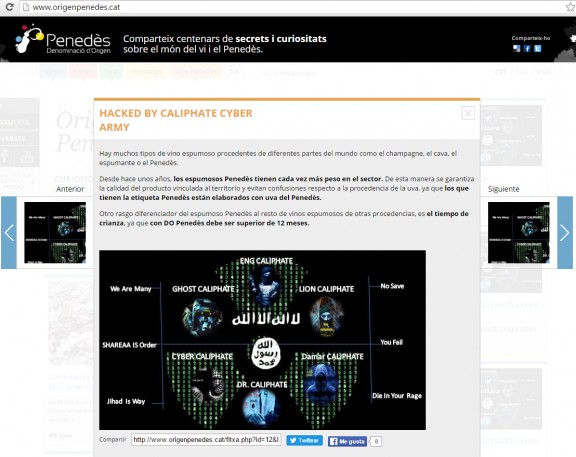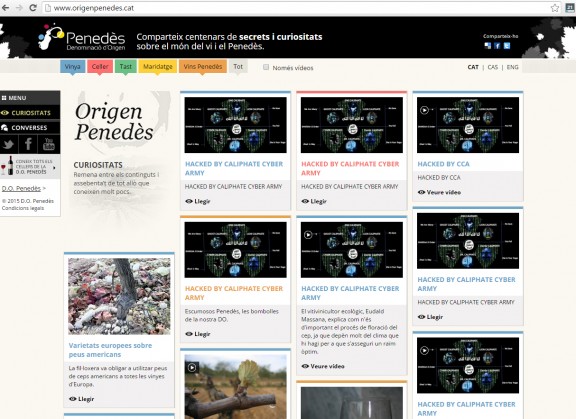 http://www.origenpenedes.cat/ ha estat hackejada i en comptes de mostrar els videos divulgatius de la DO mostrava fotografies del grup jihadista. Vàries zones del web també mostraven l'atac hacker.