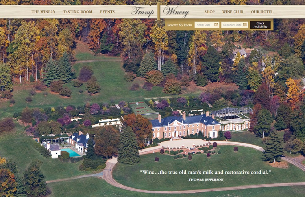 Diuen de Donald Trump que no pren cervesa, ni whisky, ni vi, ni cap mena de beguda alcohòlica. Tot i així, l’any 2011 va comprar un celler situat a la costa est dels Estats Units. I sí, potser no beu vi, però en ven. O més aviat, qui el ven és Eric Trump, el seu fill, que és qui consta com a gerent del celler. En qualsevol cas, el negoci queda entre els Trump i el vi que porta el seu nom. Vi blanc, negre, rosat i també vi escumós, per un preu que oscil·la entre els 15 i els 50 dòlars.