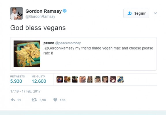Gordon Ramsay el xef i presentador més popular de la televisió britànica és, a més a més, un usuari força actiu a Twitter. Si més no això és el que va demostrar aquest passat cap de setmana. El cuiner no va dubtar a desplegar totes les seves arts per respondre els usuaris que li preguntaven el parer sobre els seus plats.