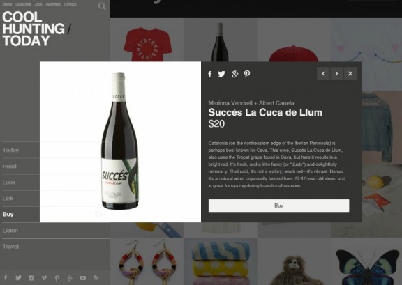 Cool Hunting és una publicació de referència pel que fa a les tendències als Estats Units. Feta a Nova York, des de l'any 2003 descobreix als seus lectors l'últim en disseny, tecnologia, estil, viatges, art i cultura. La revista conté diverses seccions, una de les quals és Buy (compra), que és on es troba la recomanació del vi La Cuca de Llum de Succés Vinícola.