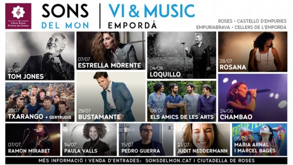Sons del Món -Vi & Music Empordà- és un festival que uneix música, gastronomia i enologia es realitza en 2 espais patrimonials: La Ciutadella de Roses i la Plaça de la Basílica de Castelló d'Empúries en els concerts de gran Format. Aquest any se celebrarà la desena edició durant el mes de juliol i primer cap de setmana d´Agost.