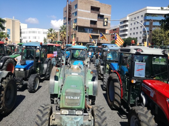D’altra banda, més de 2.000 tractors es van concentrar aquest divendres al migdia al voltant de diferents institucions del Govern de l’Estat a Catalunya en favor de la democràcia i la llibertat davant la intervenció de facto de la Generalitat i la vulneració de drets civils. Uns 400 tractors vinguts de l’Alt Penedès, l’Anoia, el Vallès Occidental, el Vallès Oriental, el Maresme, i el Baix Llobregat s’han aplegat davant la Delegació del Govern de l’Estat a Barcelona. D’altra banda, uns 150 tractors de l’Anoia nord, Osona i del Bages es van concentrar davant la Delegació d’Hisenda a Manresa (Bages). A les comarques de Girona, la concentració va aplegar 500 tractors davant la Subdelegació del Govern de l’Estat a Girona. 1.000 tractors del Camp de Tarragona es van concentrar a la Subdelegació de Tarragona, i a les Terres de l’Ebre s’ha aplegat un centenar de tractors davant la Delegació d’Hisenda a Tortosa (Baix Ebre). Les organitzacions agràries més representatives de la pagesia (Unió de Pagesos i JARC) van començar les mobilitzacions per la democràcia i la llibertat dissabte passat concentrant un miler de tractors a Lleida (Segrià) i un centenar a Vic (Osona) davant l’actuació desproporcionada de l’Estat contra la convocatòria del referèndum de l’1 d’octubre.