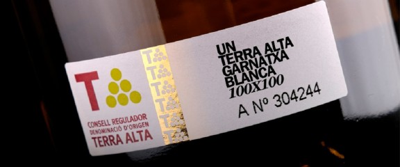 Etiquetatge d'una ampolla de vi de la DO Terra Alta. Foto: DO Terra Alta