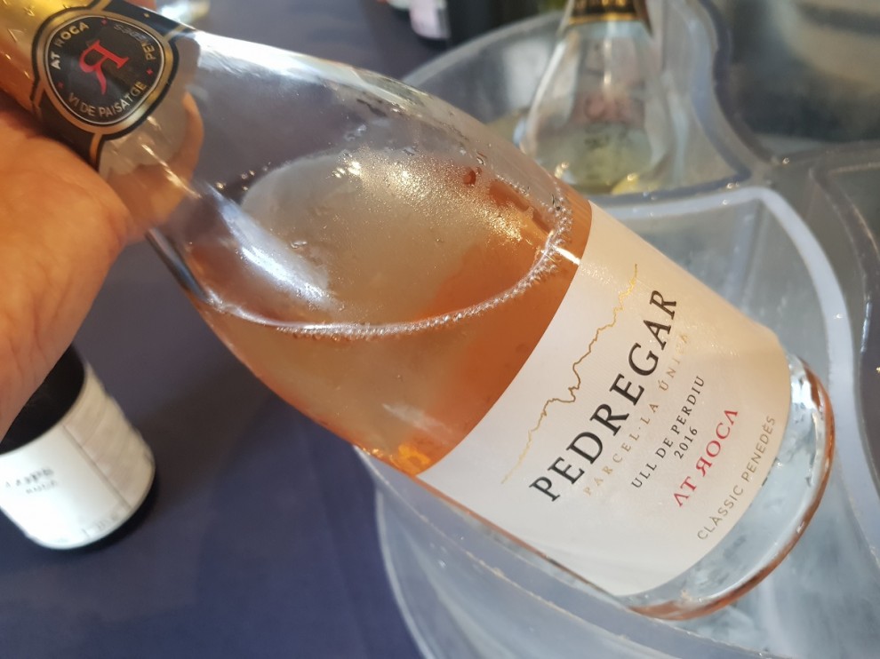 Pedregar 2016 del celler AT Roca, un escumós Clàssic Penedès elaborat amb mètode tradicional (com el cava) que és 85% garnatxa negra i 15% macabeu. A l'etiqueta apareix també el nom d'ull de perdiu en homenatge a una manera d'elaborar habitual en el passat: és el color sorgit de fer vi amb varietats blanques i negres a l'hora. És inevitable quan es tasten vins de la DO Penedès no acabar parlant d'altres bombolles. Algun celler no perd l'ocasió per mostrar un fulletó on apareix que ells també pertanyen a Corpinnat.
