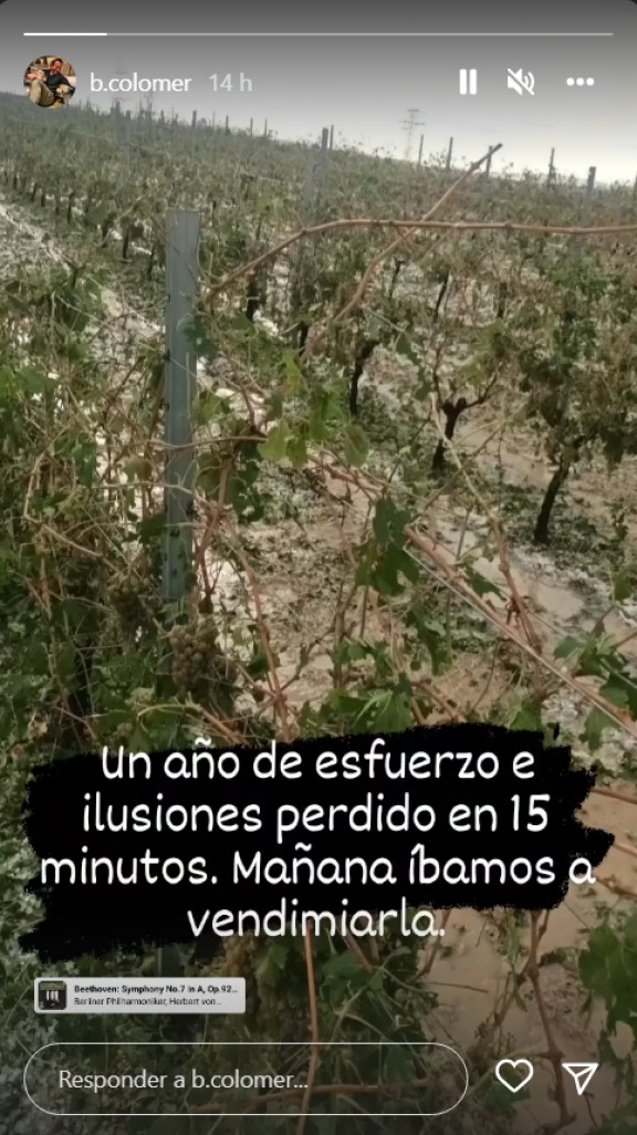 Bruno Colomer, enòleg de Codorníu, apuntava el mateix en una publicació a Instagram, "Un any d’esforç i il·lusions perdut en 15 minuts. Demà les anàvem a veremar".
