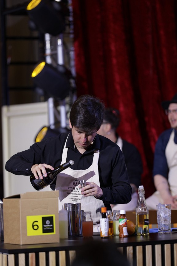 Beto del Toro elaborant el còctel per a la Gran Final de Torres Brandy Zero Challenge