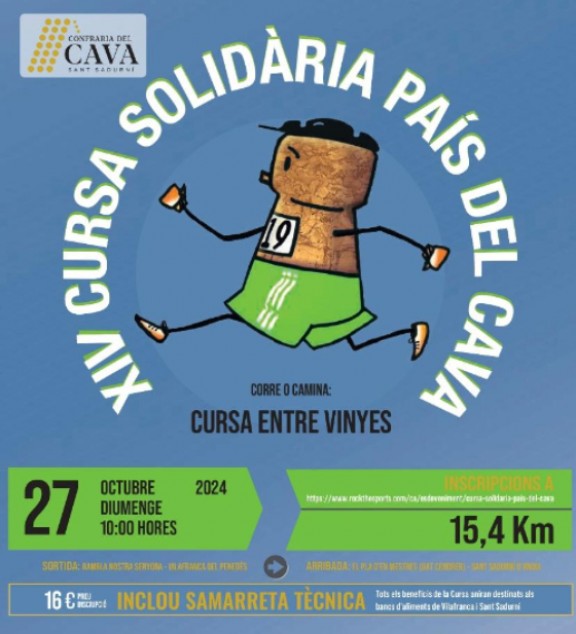 La XIV Cursa Solidària País del Cava torna el 27 d'octubre després de cinc anys, amb un nou recorregut entre vinyes i un compromís renovat amb causes socials. El trajecte uneix Vilafranca del Penedès i Sant Sadurní d'Anoia, capitals del vi i del cava respectivament.