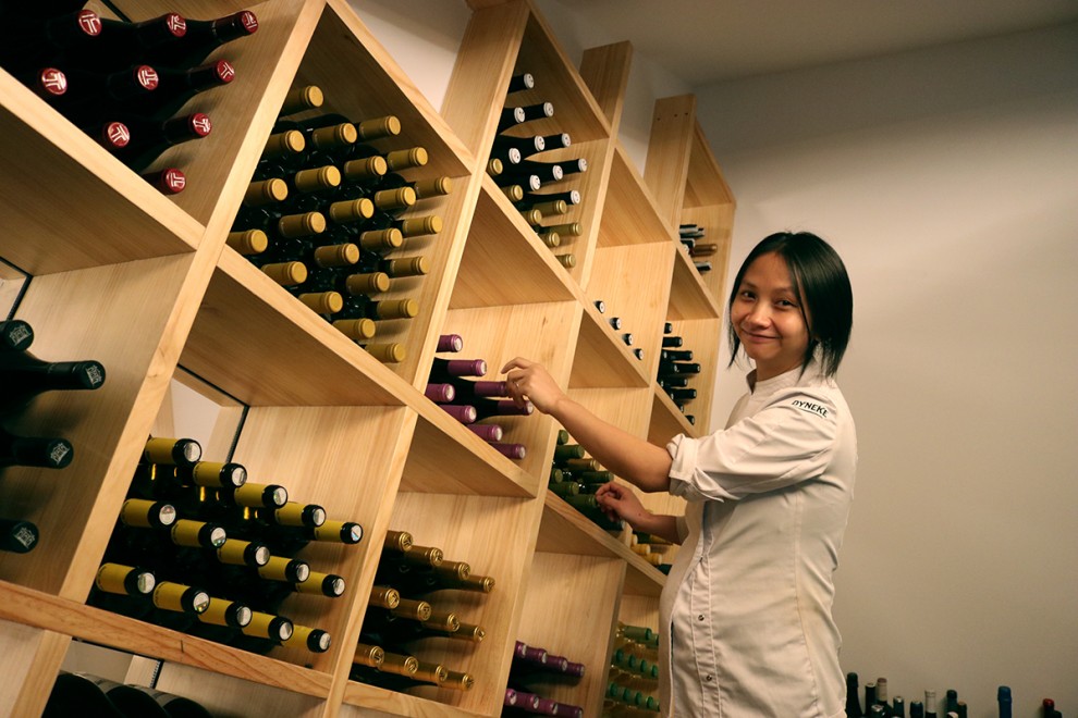 Zhou Mengxin al celler del restaurant. Foto: Somiatruites