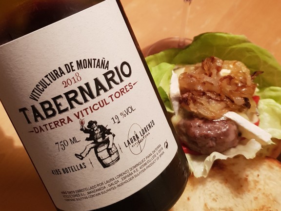 Com a maridatge és ideal per a qualsevol tall de carn gustós i amb greix, i aquí teniu una proposta fàcil per si feu un retrobament: una bona hamburguesa de vedella. Passeu breument el panet per la paella i poseu-hi una fulla gran d'enciam a la base, pebrots del piquillo, l'hamburguesa cuita prèviament (abans de treure-la del foc li haureu posat un tall de formatge blau per sobre perquè es desfaci) i ceba caramel·litzada. En cas que no trobeu el Tabernario 2018, per al del 2019 caldrà esperar a finals d'any o principis del que ve.
