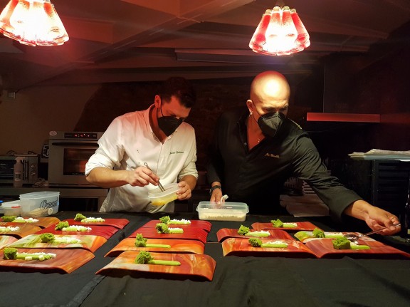 Els cuiners Jaime Lieberman i Jon Giraldo preparen el plat primavera. Foto: Jordi Bes