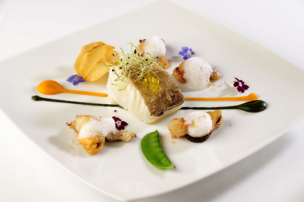 llobarro salvatge sobre rissotto de pop o els
