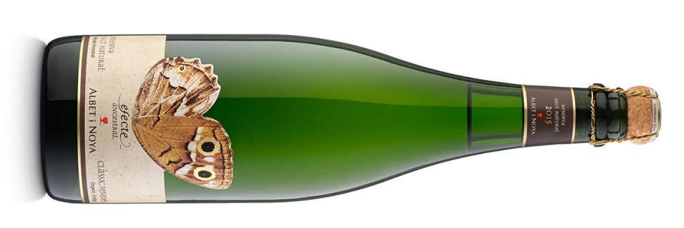 L'efecte ancestral surt al mercat amb anyada 2015 i amb més de 40 mesos de criança en rima, a un preu d'uns 16 euros. L’escumós s'il·lustra amb una etiqueta amb una papallona autòctona -