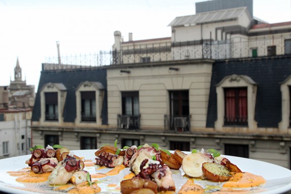 La del Claris és l'única terrassa de Barcelona amb estrella Michelin tot l'any. La cadena Derby Hotels Collection, propietat de l'empresari Joaquim Clos, ha dut a ella la cuina del seu xef favorit i amic personal, Aurelio Morales (una estrella Michelin a Cebo, a l'hotel Urban de Madrid). El plat estrella de la carta d'aquesta temporada és l'arròs cremós de cabra gallega amb maionesa de xerès, que conviu amb suggerents opcions com la crema de celeri, pop a la brasa, rovell escabetxat i kimchi o la costella de wagyu amb parmentier de castanyes, o grans clàssics com el caneló de carrabiners o la tapa de pop a la gallega amb parmentier de pebre vermell.