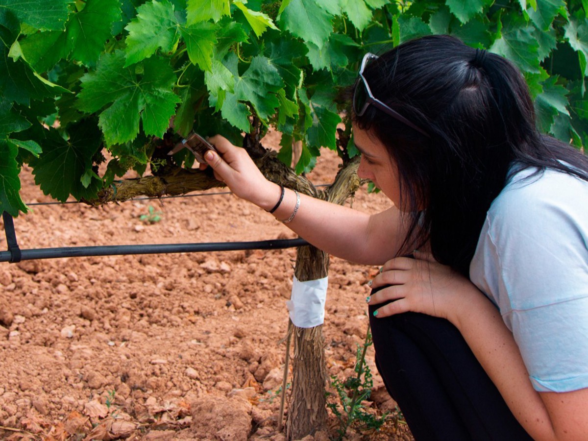 L'enòloga Ivette Alonso fent controls de vinya. Foto: Vins del Tros