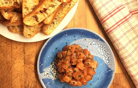Un tàrtar de salmó. És una recepta fàcil, ràpida, amb pocs ingredients que podem trobar a qualsevol supermercat, fins i tot al "paki" de sota casa.