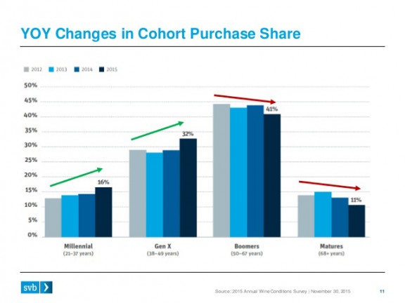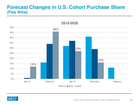 Baby Boom ha estat la generació en abanderar el consum de vi estatunidenc, ara comença a mostrar un descens del mateix, que sembla que s’accentuarà en els propers anys a mida que els “boomers”de mitjana edat es facin més grans.