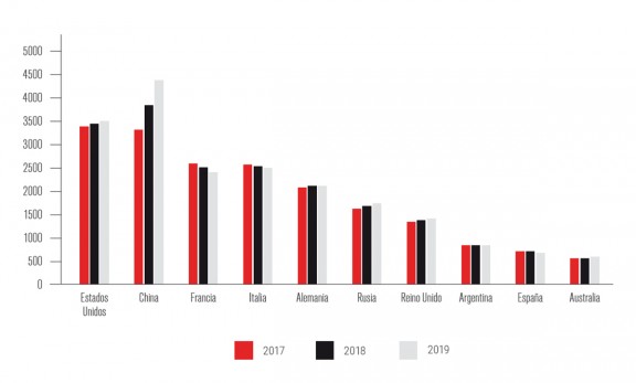 Les previsions indiquen que a partir del 2018 està previst que els Estats Units -que seguirà creixent moderadamente- deixi el primer lloc a la Xina, on l'increment és molt més pronunciat.