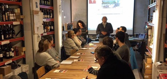 Miguel Figini, Director del Espai del Vi Català, i enòlegs visitants: Ruben Parera – Blanca Ozcàriz – Miriam Chivite – Marc Pérez.