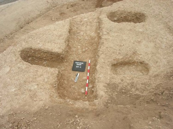 El jaciment es va localitzar mentre es realitzaven les obres d’ampliació de la carretera local de Sant Martí de Riucorb a Maldà, en una parcel·la situada en un turó que ara està destinada a la producció del cereal però que té finques veïnes dedicades al cultiu de la vinya. Les restes documentades estan isolades, un aspecte que segons la literatura arqueològica és freqüent en altres jaciments de característiques similars. L’ocupació més antiga constatada a Sifons son dues rases, una de les quals de forma rectangular que contenia una gran quantitat de ceràmica, fins a 723 fragments, de formes molt diferents, d’entre les quals en destaquen 8 peces amb el perfil gairebé complert. La troballa d’una petit bol de forma