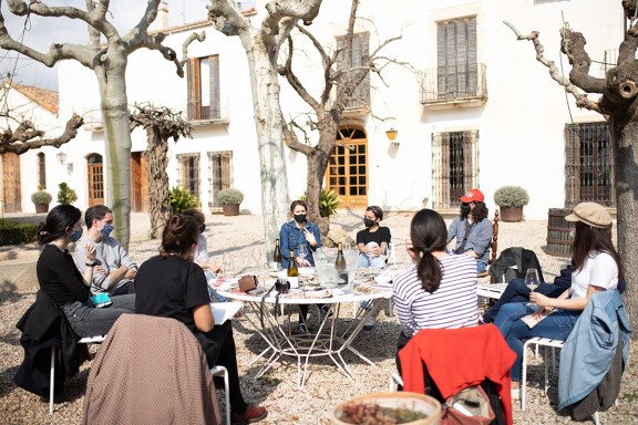 “Estàvem confinades a Mas Palou. Vam veure que l’interès per llegir era creixent durant la pandèmia. Ens preocupava d’altra banda que la gent no begués vi i també com aniria la campanya amb tot plegat i el míldiu a la vinya després”, explica l’Anna Vallès que treballa en una editorial. “És cert que ja hi ha clubs de lectura, però son vitalicis, amb una mitjana d’edat alta i costa d’entrar-hi”, remata la Maria, qui després de temps viatjant i treballant a l’estranger, ara gestiona el turisme a Mas Palou. Son les primeres setmanes de pandèmia. 2020. Tothom teletreballant, però elles pensen en com fer els dies més suportables, sense turistes ni activitat, al mas. “No existiríem sense aquest univers, sense el vi ni sense el territori. Volem que se’n parli bé, del Penedès, i que hi hagi sempre la voluntat de tornar-hi”, expliquen les germanes.