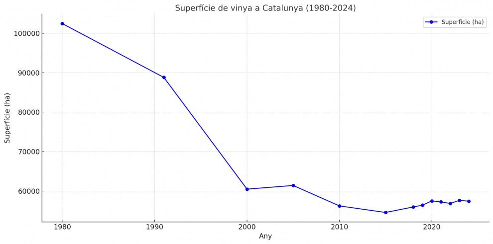 Superfície de vinya en xifres