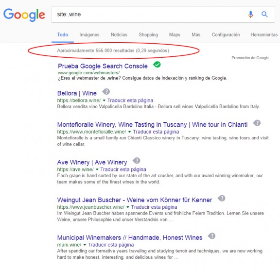 - Existeixen ja 556.000 urls amb .wine. Cal aclarir que no són dominis -o projectes web-, són urls. Cada domini es compon de moltes urls o pàgines internes.