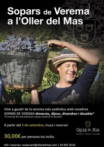 Un any més Oller del Mas organitza la festa de la verema per tal d'apropar a la gent la cultura, tradició i història d'una finca on el vi ha sigut l'ànima que l'ha mantingut en vida durant més de 1000 anys. El preuat procés de vinificació del celler i l'agricultura ecològica característica de la nostra vinya fa d'un interès únic el procés de la verema.