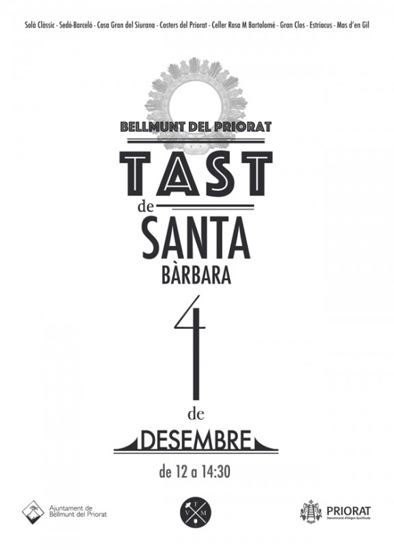 La vila de Bellmunt del Priorat organitza aquest dissabte, 4 de desembre, a partir de les 12:00 h i fins a les 14:30 h a la plaça de Miquel Muntané (davant de l'Ajuntament), el 7è Tast de Santa Bàrbara, una mostra anual de vins locals que coincideix amb les celebracions que organitza aquest municipi en honor a la patrona de la mineria.