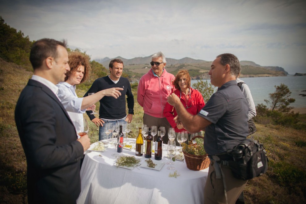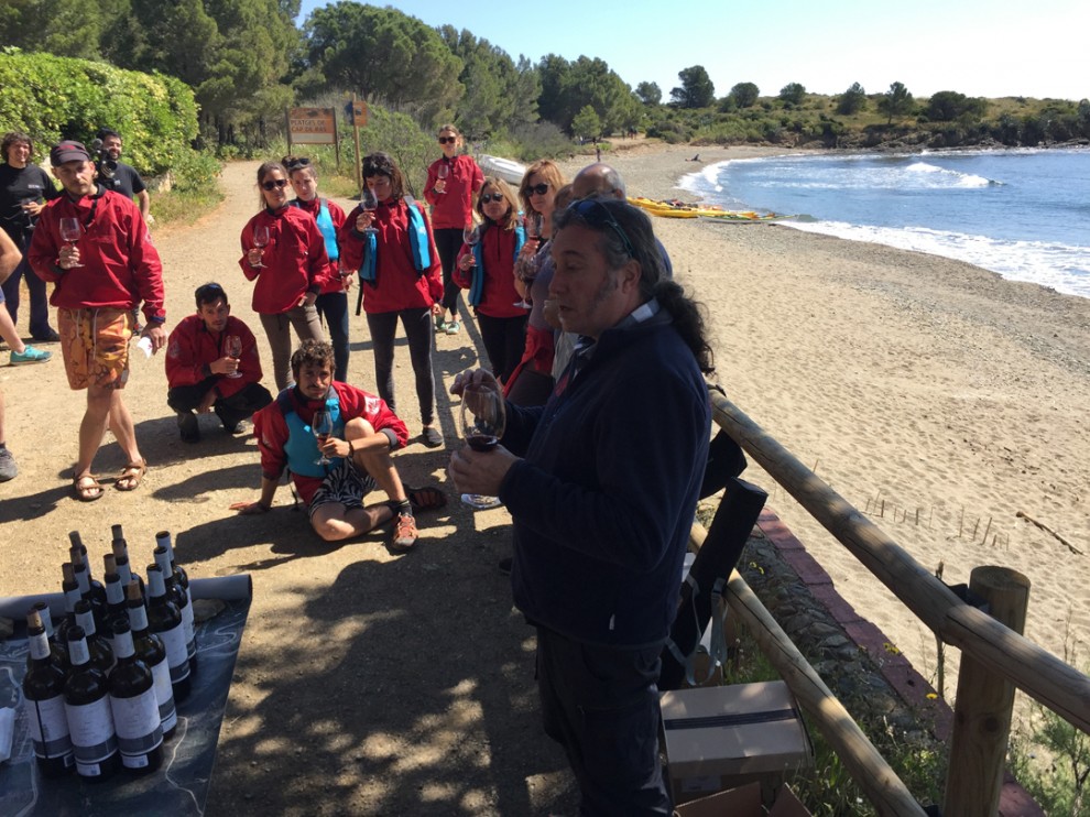 Hugas de Batlle. Les seves finques són totes al terme municipal de Colera i la família fa una viticultura respectuosa amb l'entorn i les tradicions. Navegarem en caiac des de la platja del port de Llançà i observarem les vinyes verdes vora el mar de Garbet. Desembarcarem en una caleta de Cap Ras amb vistes al Cap de Creus i tastarem els vins.