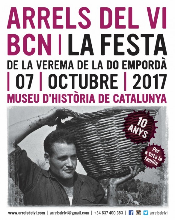 El raïm arribarà a Barcelona des de l’Empordà el dissabte 7 d’octubre, llest per celebrar els 10 anys d’Arrels del Vi amb tots els barcelonins a La Festa de la Verema de la DO Empordà. L’entrada a Arrels del Vi BCN costarà 15 euros x adult (2 nens gratis x 1 adult) i inclourà: 4 degustacions de vins de la DO Empordà, 1 copa Riedel valorada en 12 euros, 1 tapa d’Anxoves de l’Escala M. Sureda, la trepitjada de raïm popular, el tast magistral dels vins guanyadors dels Premis Arrels del Vi 2017 dirigit per Rafel Sabadí, sommelier del Restaurant El Roser 2 de l’Escala, un taller familiar per fer un pot d'Anxoves de l'Escala M.Sureda, un taller de cupatge (tast de mesclats, dos vins que en són un) i un tast de raïm familiar dirigits per Jordi Esteve de Rim Empordà, la projecció del guardonat documental sobre vi natural Fermentación Espontánea de Clara Isamat, i una visita guiada al Museu d'Història de Catalunya sobre el món del vi. Una oferta molt completa i atractiva per conèixer el món del vi i de la DO Empordà que agradarà a grans i a petits.