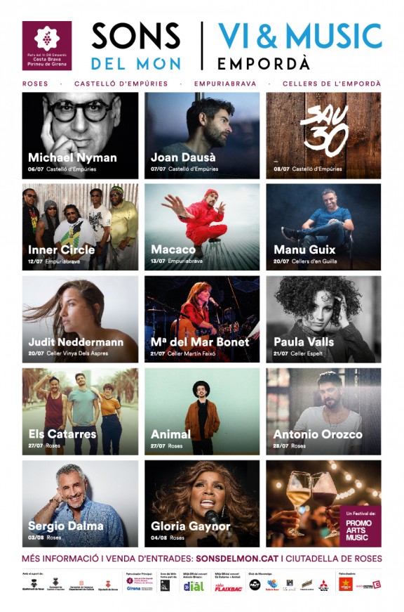 L’onzena edició de Sons del Món vi & Music es consolida com un dels grans festivals de l’estiu de la Costa Brava, a més de ser el festival de música i vi més important del país. La voluntat de creixement constant del festival es reflecteix en les 14 actuacions que tindran lloc del 06 de juliol al 04 d’agost a la plaça de la Basílica de Castelló d’Empúries, a La Ciutadella de Roses i a diversos cellers de l’Empordà.