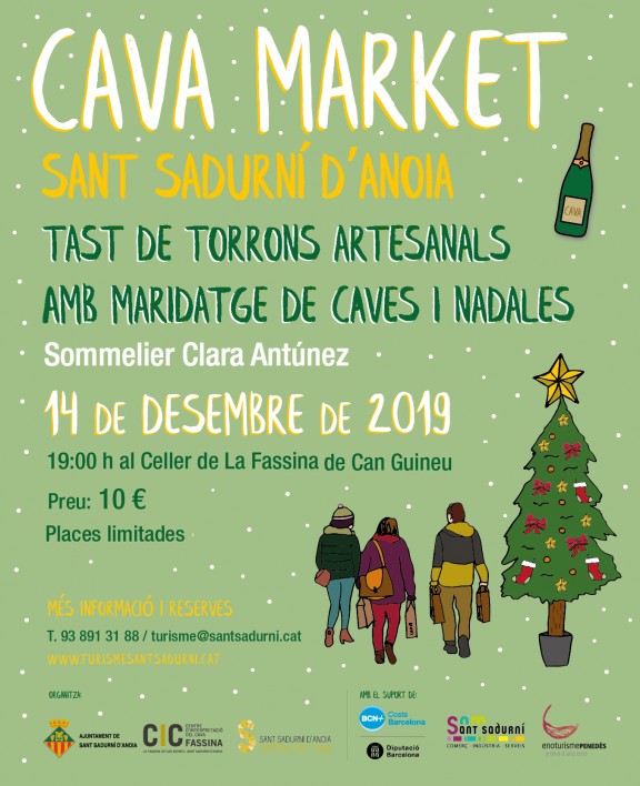 La 3a edició del Cava Market de Nadal comptarà amb una àmplia oferta de caves i productes gastronòmics de la Capital del Cava per comprar i tastar directament de la mà dels seus elaboradors. El Cava Market és una bona excusa per visitar Sant Sadurní, gaudir del temps lliure i comprar el cava i productes gastronòmics per compartir a taula amb la família i els amics.