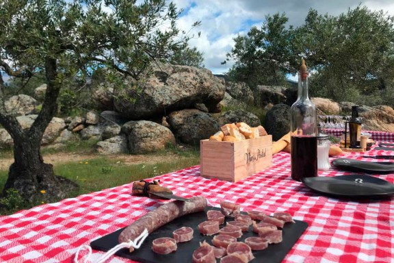 El celler Hugas de Batlle ens proposa un pícnic entre vinyes amb l'espectacular vista de la Costa Brava més autèntica. A la vinya de la Pineda, a Colera, gaudireu d'un paisatge únic mentre esmorzeu o bereneu pa amb tomàquet i embotit de proximitat amb un vi tocat per la tramuntana. Acabareu l'experiència visitant el celler i tastant 3 vins més.
