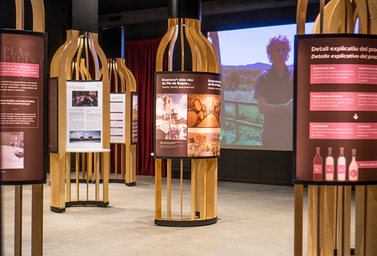 “Cadascuna de les ampolles de vi del centre permet endinsar-se en la història del Bages, conèixer el cicle de la vinya, el procés d’elaboració del vi, les varietats i les característiques dels vins de la terra”, comenta Planas. Un audiovisual reforça els panells informatius que omplen les ampolles i s’hi poden escoltar des de les reflexions del president Joan Soler a la veu dels vinyaires, amb imatges de cups de pedra on encara s’hi fa vi, on es posa de relleu la riquesa del patrimoni del Bages.