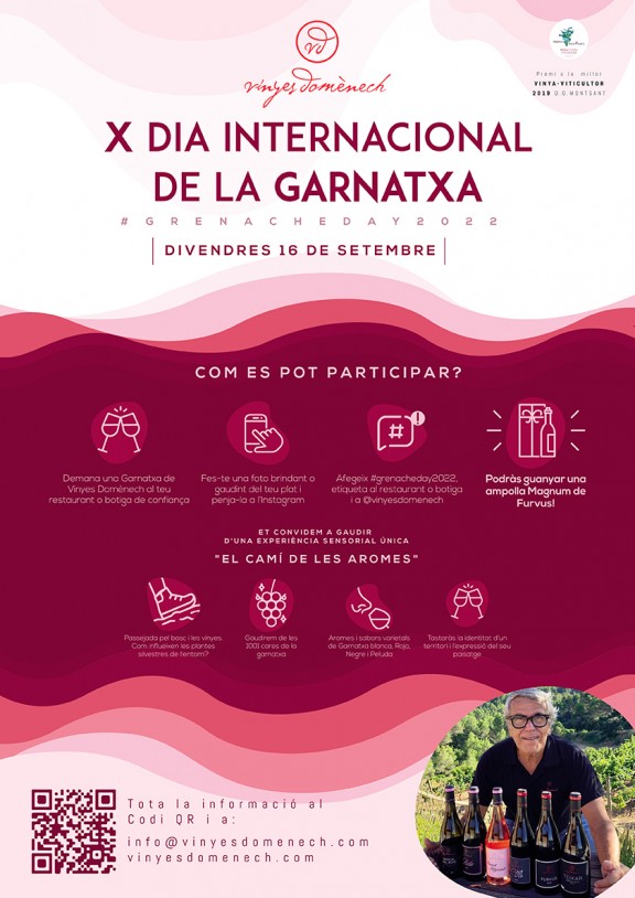 tast de garnatxes en mans dels diferents professionals i tindran accés mitjançant un codi QR a l'experiència sensorial "El camí de les aromes" a Vinyes Domènech. També participaran en el sorteig d'una ampolla