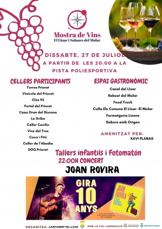 Mostra de Vins El Lloar i Solanes del Molar, que comptarà amb la participació dels cellers: