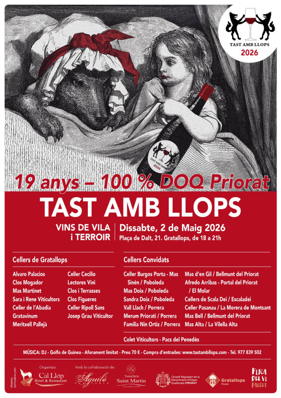 Context: Tast amb Llops se celebrarà el 2 de maig a Gratallops, en paral·lel a la Fira del Vi de Falset. És una de les cites més consolidades del calendari prioratí i, de fet, va ser el primer acte satèl·lit de la comarca vinculat a la fira.