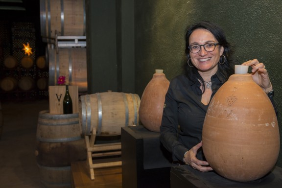Eva: Estem treballant amb un vi fet en àmfores de 15 litres. I les àmfores són del nostre terrer. El vi porta parellada i xarel·lo. Té més acidesa, i volem transmetre la mineralitat del nostre terreny calcari.