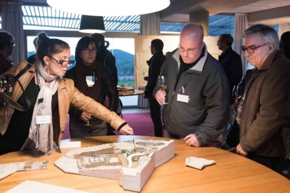 Els assistents van poder recórrer les instal·lacions lliurement. A la sala de tast hi havia preparada una exposició amb plànols i maquetes originals de la gènesi i desenvolupament del projecte, incloent anotacions personals i correccions. A la sala de bótes, sota el títol “Una visió compartida” es van exposar deu imatges de gran format realitzades per cinc joves fotògrafs que han interpretat les geometries i les llums dels diferents elements arquitectònics amb un llenguatge visual molt personal.