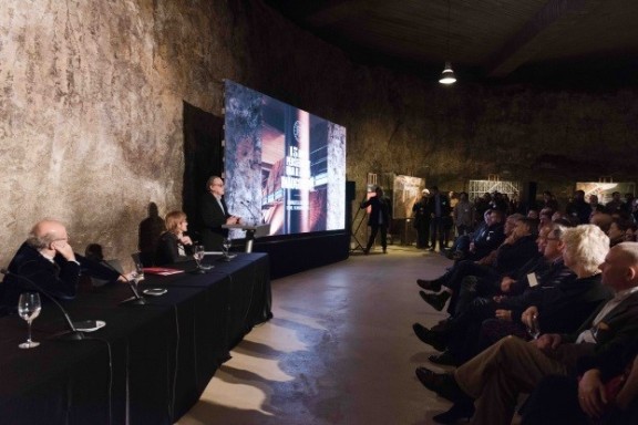 Durant la presentació de l’acte, Carlos Esteva, visiblement emocionat, va resumir el seu projecte vital i la concepció dels seus vins, des que l’any 1979 va decidir viure a la finca del seu avi, Can Ràfols dels Caus, contextualitzant el com i el perquè d’aquest nou celler i va agrair l’esforç de totes les persones que han intervingut en l’obra. L’arquitecte Paolo Deganello, vingut des d'Itàlia per a l’ocasió, va explicar com l’any 2000 es va iniciar el projecte que havia de respectar un entorn únic d’alt valor paisatgístic, amb una casa pairal llegada per un passat històric. Amb aquest objectiu i tenint cura de tots els detalls al màxim, es va dissenyar un celler totalment incrustat en la roca del Massís del Garraf, invisible des de l’exterior i projectat a diferents nivells a fi de facilitar la vinificació per gravetat.