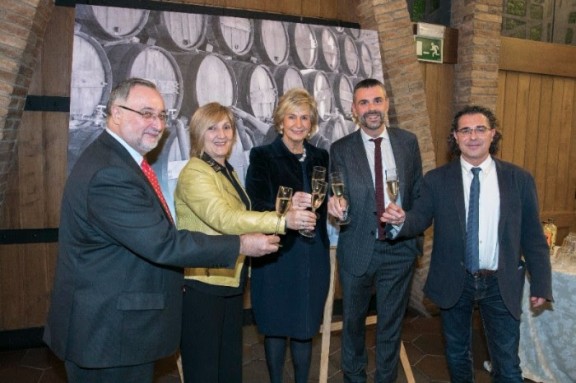 Jusèp Boya, director general d'Arxius, Biblioteques, Museus i Patrimoni de la Generalitat de Catalunya; Maria Rosell, alcaldessa de Sant.Sadurní d'Anoia; Mar Raventós, presidenta del grup Codorníu Raventós; Santi Vila, conseller de Cultura de la Generalitat de Catalunya i Francesc R. Olivella, president del Consell Comarcal de l'Alt Penedès