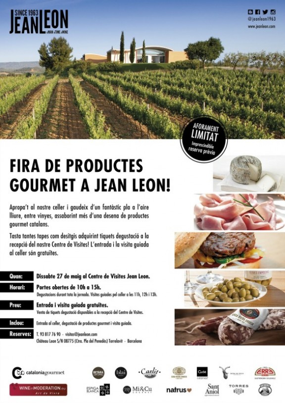 Jean Leon s’uneix amb 13 elaboradors de productes gourmet de Catalunya, associats al Clúster Catalunya Gourmet, per celebrar la primera Fira de Productes Gourmet Catalans al celler del Penedès, el proper dissabte, 27 de maig, de les 10h del matí i fins a les 15h.