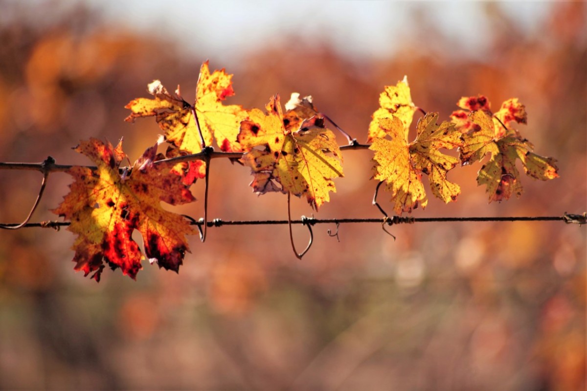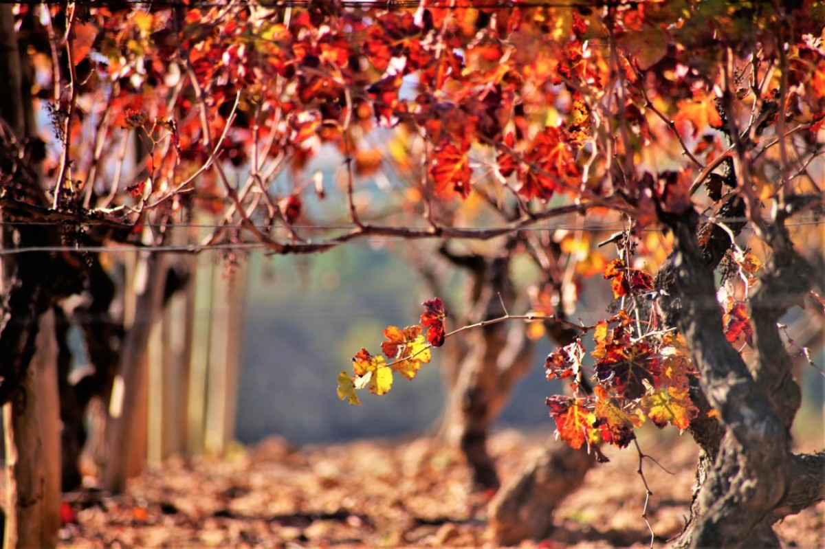 La llum obliqua de la tardor il·lumina uns paisatges vitícoles de postal. Són temps de repòs. La saba retorna a les arrels mentre s’encenen cromàticament els pàmpols. Grocs terrosos, marrons, ocres, carbasses, taronges i fins i tot els rojos dels pàmpols de les vinyes de sumoll, garnatxa tintorera o carinyena ofereixen una gran paleta de colors, un cromatisme espectacular. Són colors càlids que ha copsat l’objectiu de la