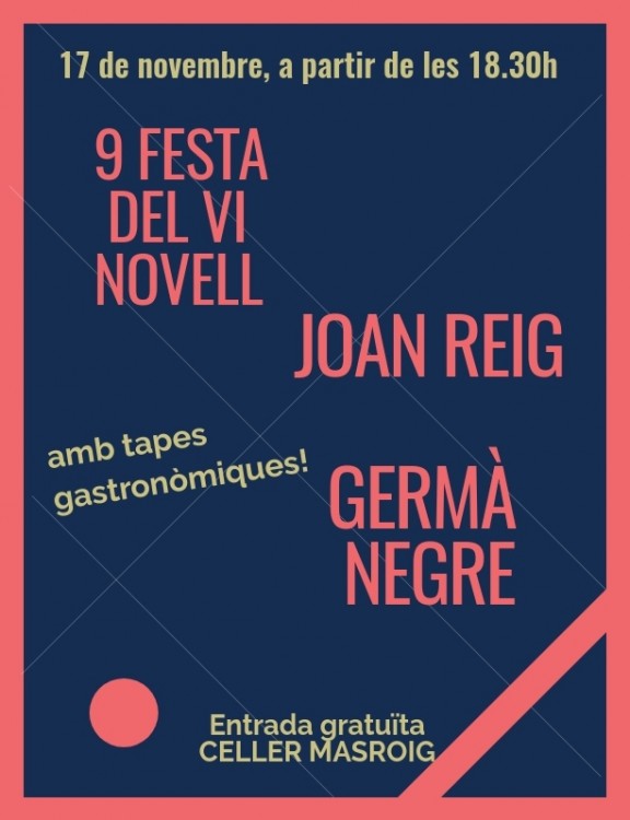 El dissabte 17 de novembre tindrà lloc la 9a Edició de la Festa del Vi Novell del Celler Masroig. El celler és pioner en la recuperació d’aquesta tradició catalana, amb l’objectiu de continuar sent una referència en el món del vi i potenciar així l’enoturisme de la zona del Priorat.