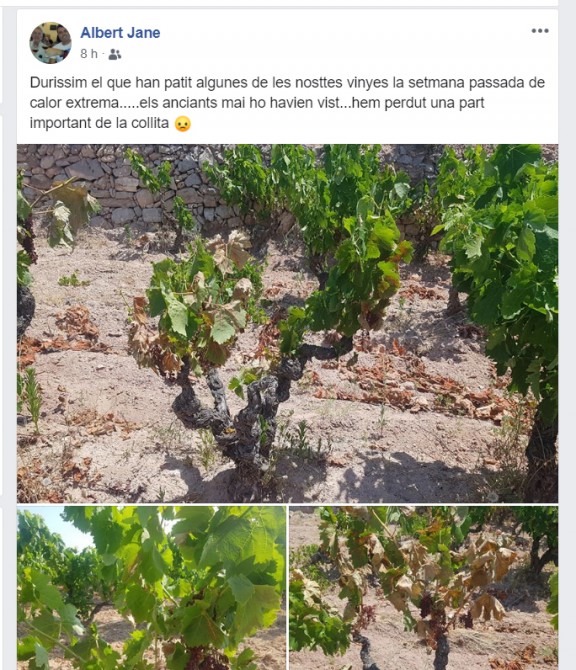 "tot i que a hores d’ara resulta complex fer una valoració exacta de les vinyes afectades, estimem que s’ha produït la pèrdua d’entre el 20 i el 25 per cent de la collita". L’onada de calor ha afectat especialment a les varietats negres com les carinyenes joves i el syrah, i també a les varietats blanques com pedro ximenes i cartoixà.