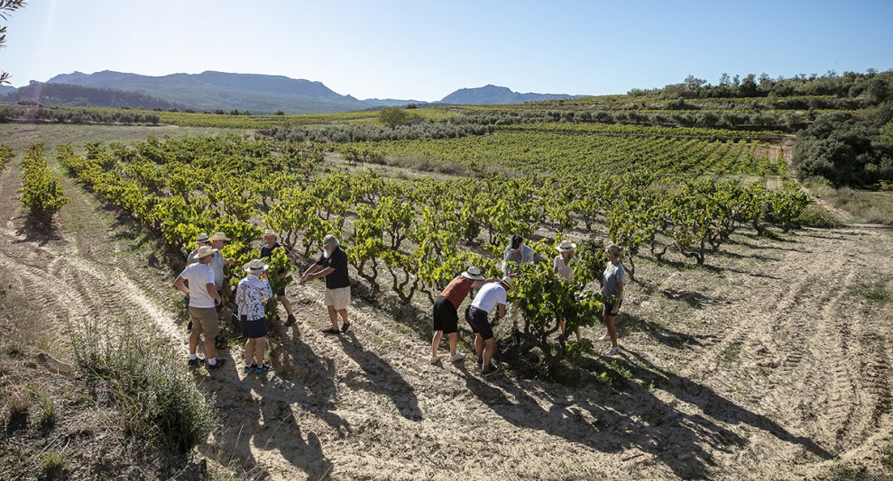 Actualment gestiona 36 hectàrees de vinya a diversos punts de la DO Montsant i amb tota la diversitat de sòls: des de petites produccions per cep que van des de 500 grams en les vinyes de més de 70 anys, fins al 1,5 quilos / cep en les vinyes de 15 a 40 anys. Tots els treballs es realitzen a mà, des de la poda fins a la verema. La viticultura és ecològica, lliure d'herbicides i pesticides.