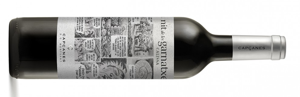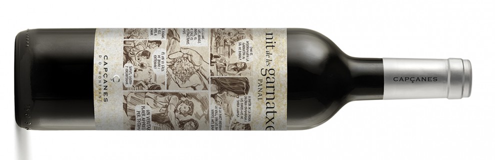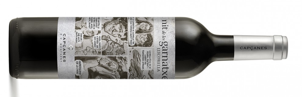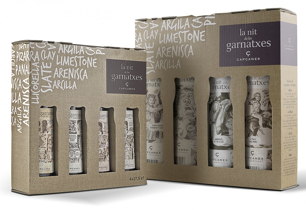 Inicialment, quan la festa va adquirir entitat pròpia, es presentaven i donaven a tastar els vins de quatre garnatxes de vinyes de diferents sòls, que des del celler embotellaven exclusivament per a la Nit de les Garnatxes. Es considerava que el tast presencial era la millor manera de fer comprensible al públic la influència del terrer en els vins. D’aquí que quan van decidir comercialitzar les quatre garnatxes amb el nom de l’esdeveniment i destacant el tipus de sòl, van apostar per una etiqueta molt personal que simula una tira de còmic. Es tracta d’una solució efectiva per explicar la influència de cada sòl en el raïm i el vi resultant. Així, a manera d’historieta, es donen a conèixer els trets distintius de cada vi i sòl a través dels personatges dibuixats. Precisament, el recurs del còmic per les etiquetes els ha valgut recentment la prestigiosa distinció Harper’s Design Awards 2020, que premia el disseny de la identitat de marca de la gamma.