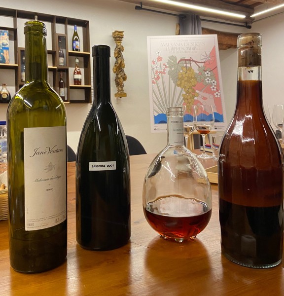 ELs quatre vins de malvasia tastats. Foto: Ruth Troyano