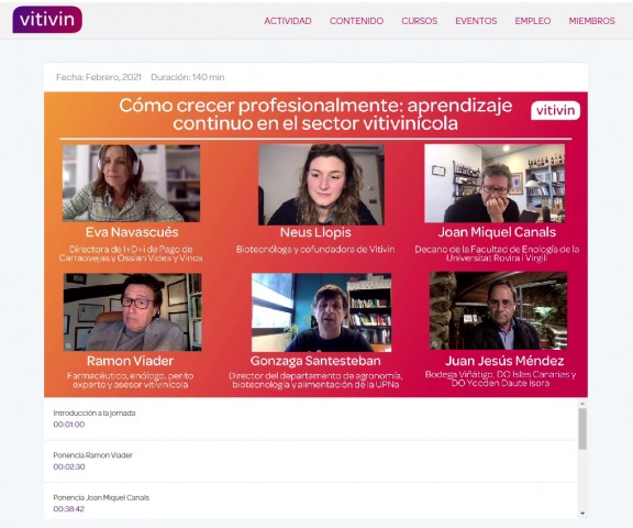 Zoom, era més adient organitzar-les dins del context vitivinícola, amb Vitivin”, explica David Budó. “Als inicis volíem que tothom tingués un accés gratuït, perquè estàvem enfocats al sector professional, però vam adonar-nos aviat que el coneixement costa diners i vam decidir fer una subscripció el més accessible possible per als usuaris, de 10 euros mensuals. Passat un temps, vam veure que no era suficient per sostenir l’estructura. I mantenint sempre criteris tècnics i científics, hem inclòs a diferents empreses com a