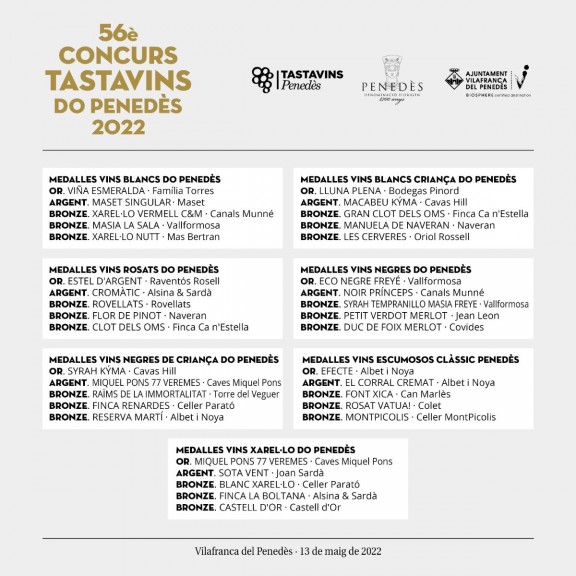56è Concurs Tastavins DO Penedès, uns premis organitzats per l'Acadèmia Tastavins Penedès amb el suport tècnic de la DO Penedès i la col·laboració de l'Ajuntament de Vilafranca del Penedès. Després de dos anys en que la situació sanitària ha marcat el format de l'esdeveniment, enguany s'ha pogut celebrar amb total normalitat. Enguany